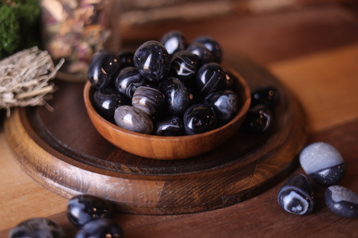 A stone of grounding and protection, Black Agate shields the aura and stabilizes energy. It brings inner strength during times of grief.