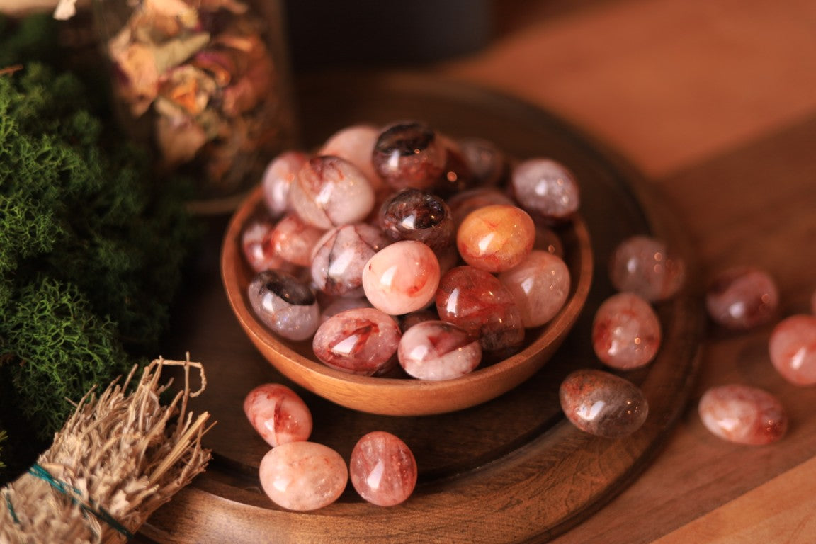 Hematoid Fire Quartz grounds and calms the mind, aiding in processing and sorting thoughts. It dissolves imbalances and negativity, promoting balanced energy. Inspiring creativity and originality, it enhances focus and concentration. Boosting willpower and self-esteem, it invigorates and rejuvenates, fostering cheerfulness and vitality.