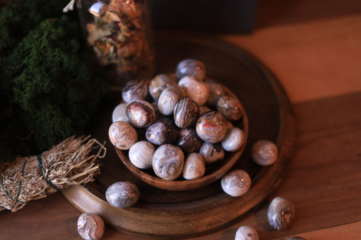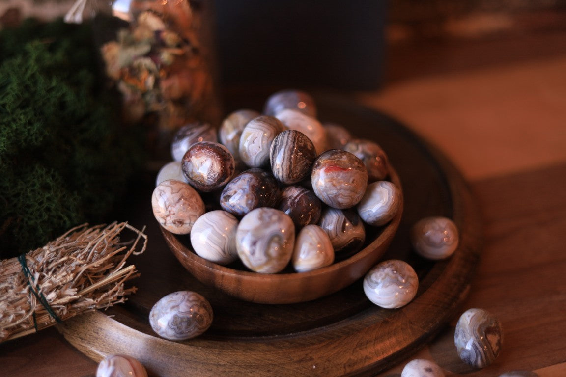 A stone of grounding and emotional healing. Mexican Agate is said to stabilize the aura, enhance creativity, and bring inner peace.